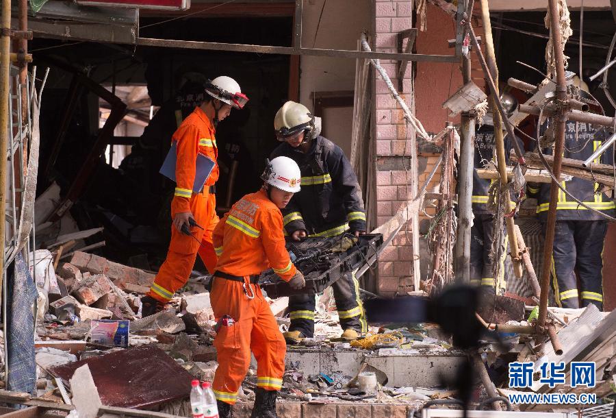 8月29日,北京左家庄北里12号楼1层,消防人员从屋里抬出搜救设备。 8月29日5时42分,北京朝阳区左家庄北里12号楼一住户家发生爆燃,已造成多人受伤,1人死亡。目前搜救工作仍在进行,事故原因正在调查中。新华社记者张宇摄