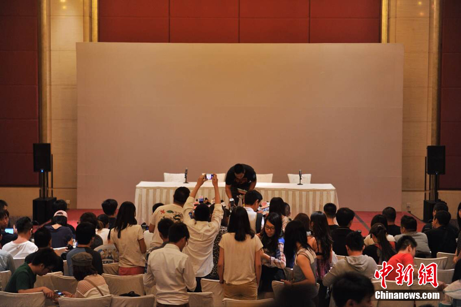8月29日,因吸毒被行政拘留14天的台湾男星柯震东在北京丽晶酒店举行道歉发布会。柯震东于8月29日凌晨获释,并在父母的陪伴下乘车回到酒店。图为多家媒体在现场等待发布会开始。 中新网记者 金硕 摄