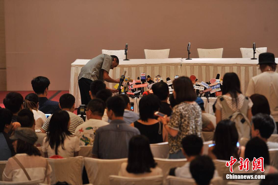 8月29日,因吸毒被行政拘留14天的台湾男星柯震东在北京丽晶酒店举行道歉发布会。柯震东于8月29日凌晨获释,并在父母的陪伴下乘车回到酒店。图为多家媒体在现场等待发布会开始。 中新网记者 金硕 摄