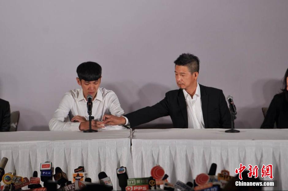 8月29日,因吸毒被行政拘留14天的台湾男星柯震东在北京丽晶酒店举行道歉发布会。柯震东于8月29日凌晨获释,并在父母的陪伴下乘车回到酒店。图为柯震东道歉会现场。 中新网记者 金硕 摄