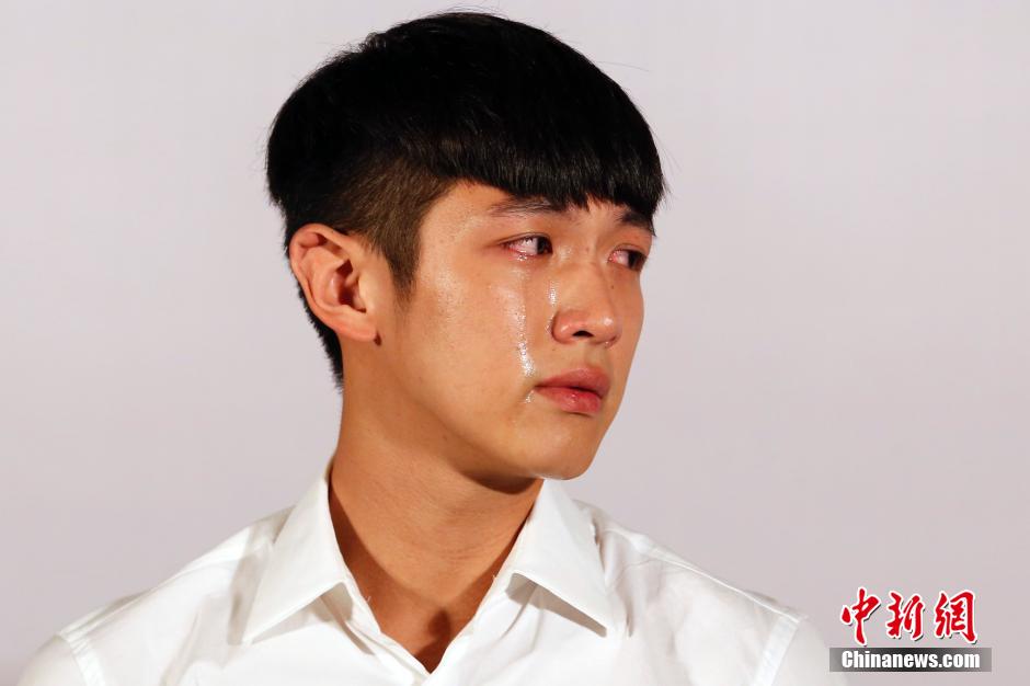 8月29日,因吸毒被行政拘留14天的台湾男星柯震东在北京丽晶酒店举行道歉发布会。柯震东于8月29日凌晨获释,并在父母的陪伴下乘车回到酒店。图为柯震东道歉会现场泣不成声。 中新社发 韩海丹 摄