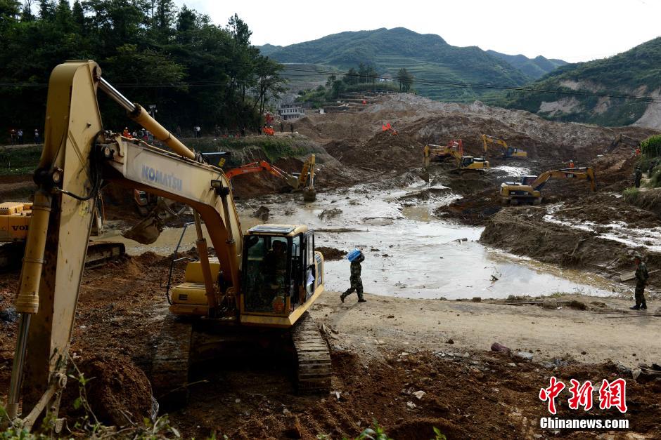 8月31日,据现场救援指挥部通报,贵州福泉“8·27”山体滑坡抢险救援仍在进行,经全力搜救,31日上午又搜寻到2名遇难者。截至31日10时,滑坡已造成22人遇难,22人受伤,1人仍失联,受伤人员已有1人伤愈出院。 中新社发 吴儒波 摄