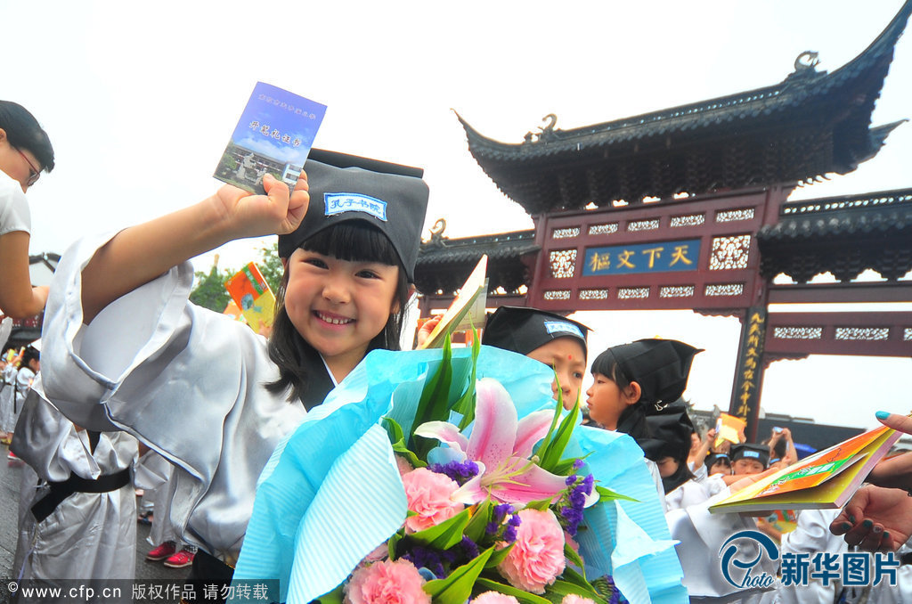 7点半,抱着典礼上要献给孔子老爷爷的鲜花,晞晞拉着妈妈匆匆出门了。8点不到,班级里大半同学都来了,大家穿戴整齐,兴奋的等着典礼正式开始。
