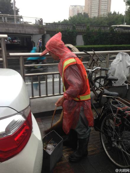 下了一夜的雨还未停歇,北京的空气中弥漫着丝丝冷峭。清扫员、执勤民警……一场雨中的坚守,一个个平凡岗位上尽心尽责的忙碌身影。为了更多人的平安,为了这个城市的美丽,他们冒雨坚守着自己的工作岗位。感谢那些雨中默默坚守的身影。