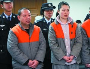 被告人闫永喜和情妇毛旭东在法庭受审。资料图