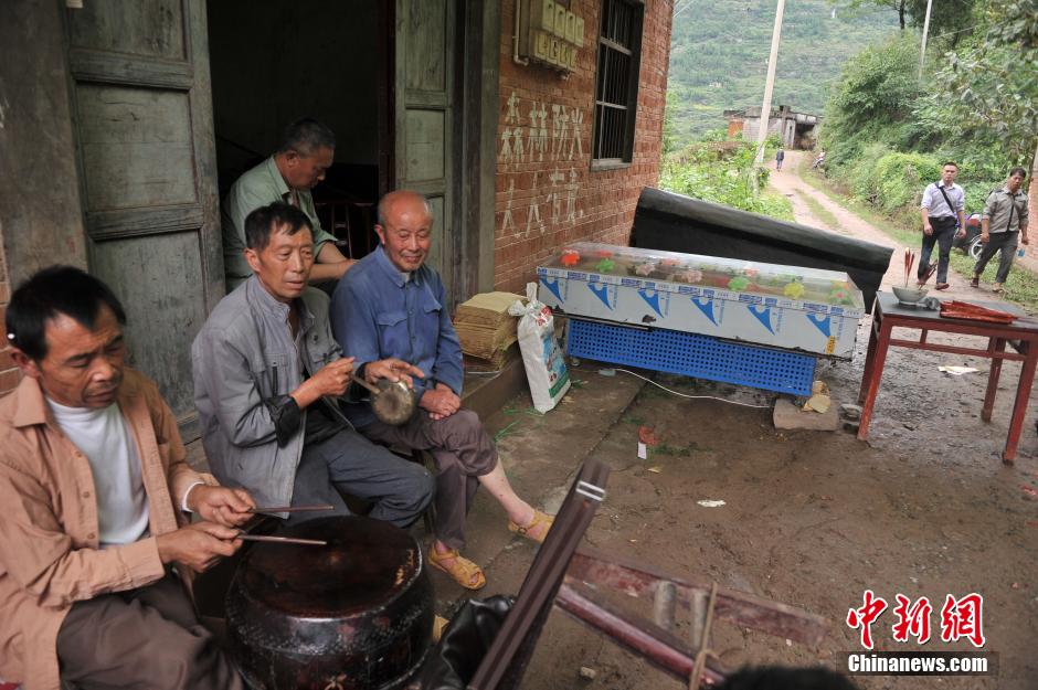 9月2日,重庆云阳一村庄19间民房遭冲垮,五老人罹难。一场特大暴雨后,重庆云阳县噩耗频传,令人心碎。1日晚,大山深处的云阳县南溪镇天河村,一股山洪冲垮19间民房,10位老人被埋。截至2日晚,3人受伤获救,5具遗体被发现,还有2人生死未卜。图为当地居民正在为遇难者做法。陈超 摄