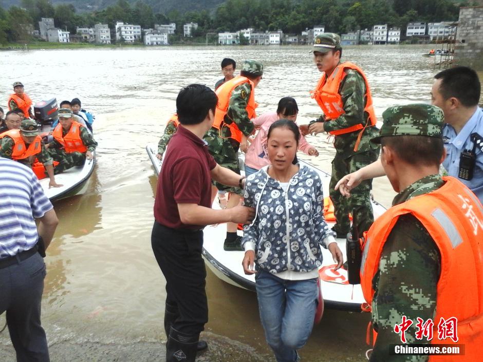 近日,受持续强降雨影响,重庆巫溪遭遇暴雨袭击,多个乡镇不同程度受灾。其中,位于该县古路镇的古路初级中学被水“围困”,当日暴雨持续不断,洪水渐渐淹没了校园,并越积越深,学校被完全淹没,1600多师生来不及转移就被困在“孤岛”。9月2日下午,武警重庆总队船艇支队官兵紧急赶赴巫溪。35名官兵到达古路初级中学迅速展开救援。目前,经过4个多小时的奋战,武警官兵已经安全转移405名被困师生,正对剩余1200多名师生全力转移。谢江 摄