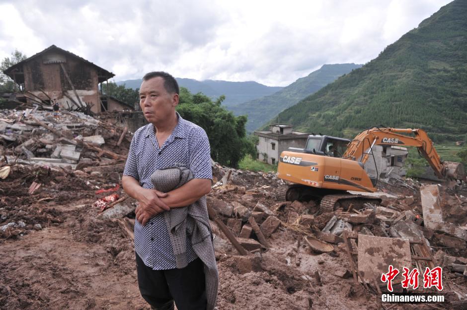 9月2日,重庆云阳一村庄19间民房遭冲垮,五老人罹难。一场特大暴雨后,重庆云阳县噩耗频传,令人心碎。1日晚,大山深处的云阳县南溪镇天河村,一股山洪冲垮19间民房,10位老人被埋。截至2日晚,3人受伤获救,5具遗体被发现,还有2人生死未卜。图为一老人正在等待自己被埋的老伴。陈超 摄