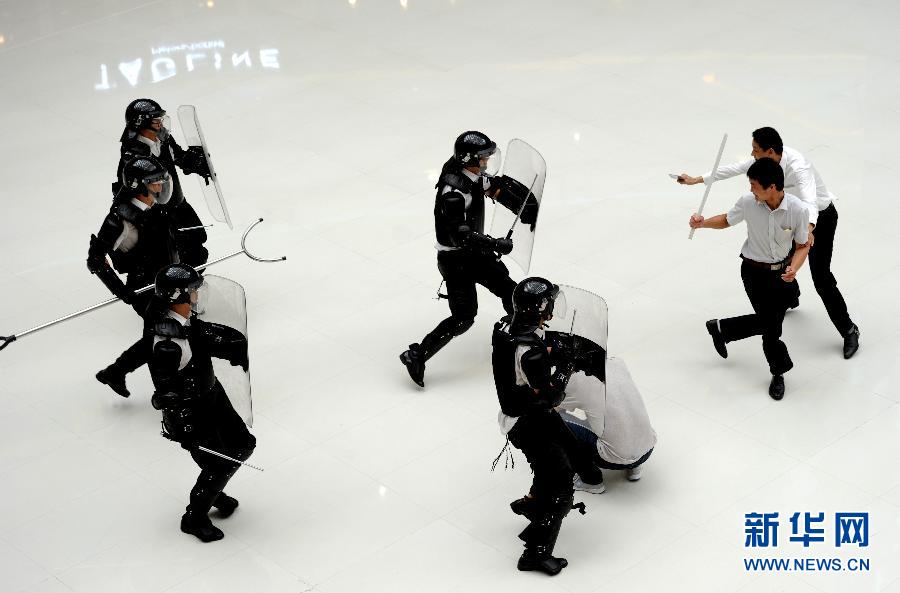 9月2日,商场安保人员在演练处置暴力伤人事件。