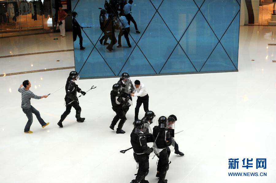 9月2日,商场安保人员在演练处置暴力伤人事件。新华社记者 刘军喜 摄