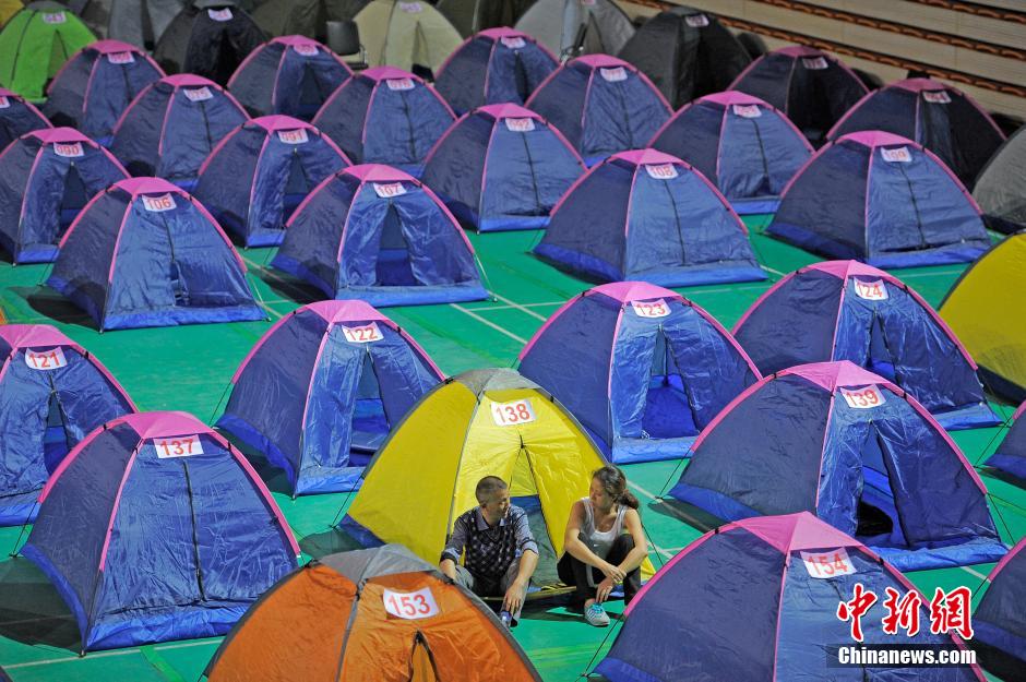 9月3日,天津大学新生报到日,学校在该校体育馆中搭设200余顶 “爱心帐篷”,为前来报到的外地新生家长们提供免费住宿。中新社发 佟郁 摄