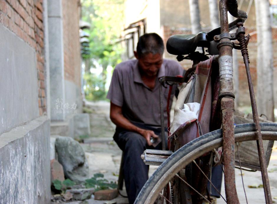 温玉庭磨刀时十分细心。他告诉记者,“磨刀丝毫马虎不得。”停在一旁的“大金鹿”自行车已经跟随温玉庭四十多年,如今车身已经锈迹斑斑,在车把下面依然系着几条机关打钢印时的“数码条”,具有强烈的时代印记。 齐鲁网发 董西德 摄 图片来源:齐鲁网
