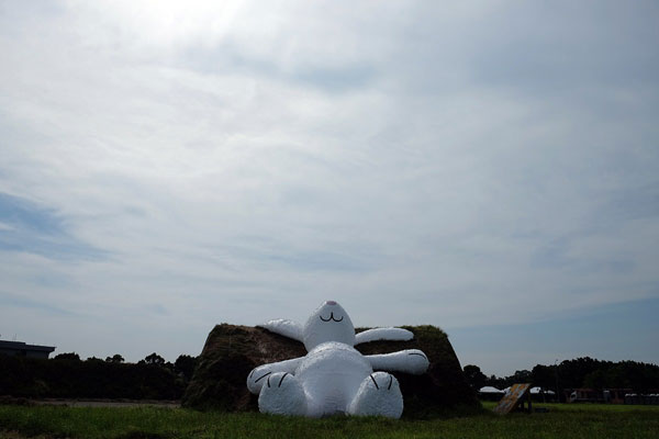 这是霍夫曼的“第四个孩子”,霍夫曼仍呈现一贯风格,将周遭的小动物“极大化”,颠覆视觉的常见性,25米的“月兔”躺在机堡上,双手一摊,犹如一只兔子躺在大抱枕上。