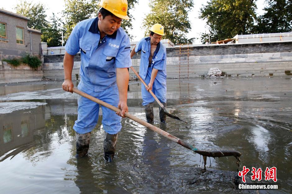 9月4日,北京故宫筒子河排水后留下的垃圾。近日,故宫筒子河启动“洗泥”工程,为保护文物,清淤将全部采用人工挖掘。据悉,这是1998年以来筒子河的首次清淤,“十一”前7600立方米淤泥将全部清理完毕并从北海引水注入。届时,曾拱卫皇家禁苑的“御河”将清澈见底重现碧水绕城的美景。中新社发 韩海丹 摄