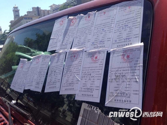 因被贴出多张罚单遭网友戏称为“最壮观”罚单。(图片来源于网络)