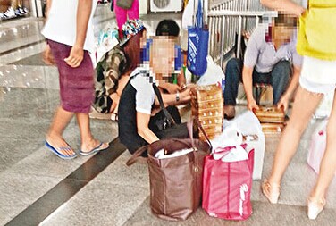 记者日前到上水符兴街、新康街、新发街一带观察,发现在海禧广场门前一个水货客集散场,有大量市面几乎卖断货的半岛酒店“迷你奶皇月饼”正被分派予水货客带货。有水货客头目向记者表示,带一盒半岛月饼到深圳可赚10元,同时又怂恿记者带货。