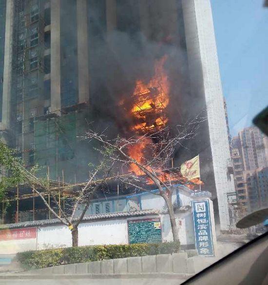 今天(9月5日)早上10点40分,网友“枫溪0301”发微博称,西安凤城七路明光路与文景路之间一建筑工地发生火灾,火势很大。