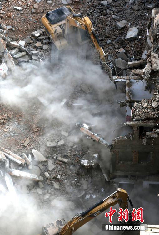 9月5日,河南郑州关虎屯拆除现场尘土飞扬。当日,位于郑州市繁华地段的城中村关虎屯进行拆迁,废墟上空尘土漫天,周围500米空气严重受到影响,路过关虎屯附近的行人多捂着口鼻匆匆而过。中新社发 杨正华 摄