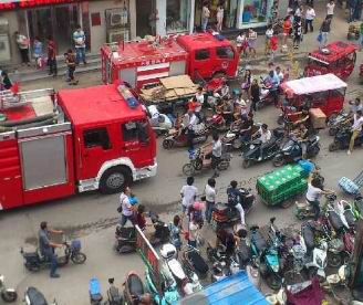 据郑州新闻广播9月8日消息,郑州一马路布厂街着火,火势不明,现场起大烟,烟雾较大,消防车前往救援。据网友爆料,由于电动车堵塞周围道路,消防车过不去,“响了半天,最后退出来了。” 图为电动车堵塞消防车现场。