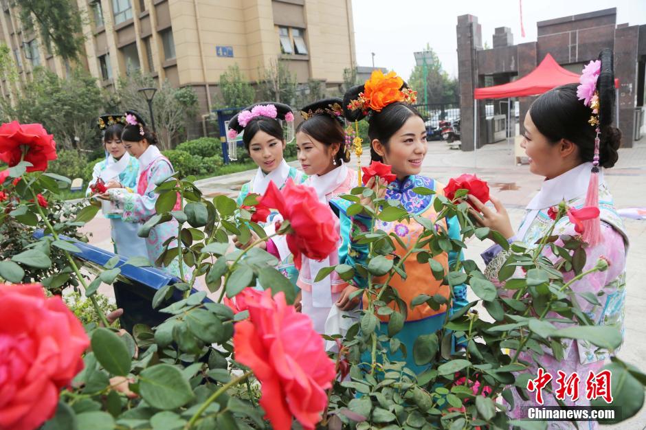 9月8日,模特身穿清装扮成“宫女”在房地产商家新建小区内赏景游玩。当日为传统中秋佳节,河南省许昌市一家房地产公司开展清装美女中秋游园盛典活动,数名美女模特身穿宫廷清装扮成“宫女”在其新建小区内玩“穿越”,独特的创意和仿古的装扮吸引了许多市民。中新社发 耿国庆 摄 图片来源:CNSPHOTO