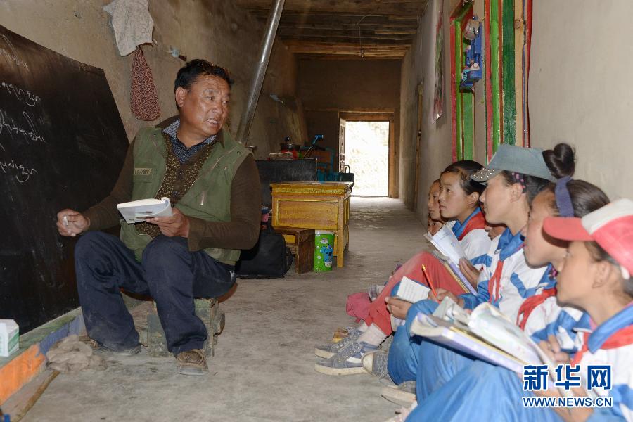9月9日,陈列江措在自己家狭小的房屋内给学生义务补课。新华社记者 王守宝 摄