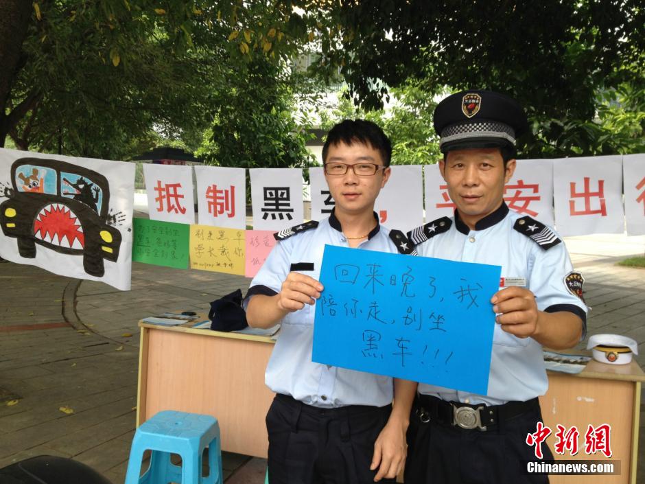 图为校园保安:回来晚了我陪你走,别坐黑车。 谯治 摄