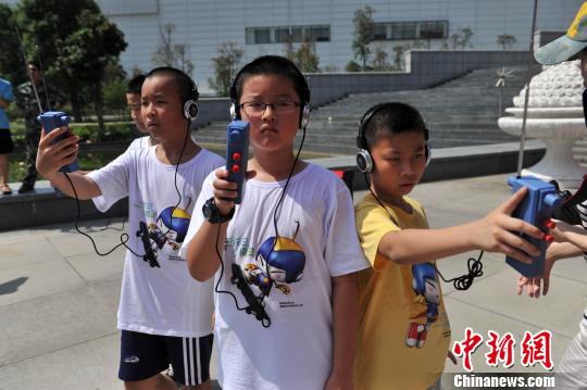 图为小无线电爱好者现场演示查找“黑广播”。 吕明 摄