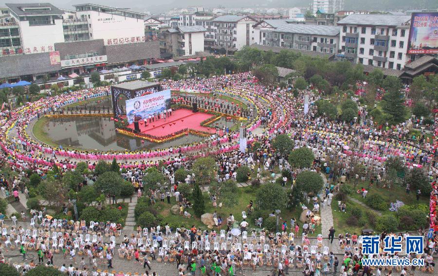 这是9月13日拍摄的江西宜春万人洗脚场面。当日,江西宜春明月山风景区举行万人洗脚活动,共有10289人同时洗脚。 新华社发(邹海斌 摄)