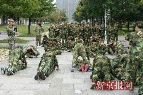 新京报快讯(见习记者左燕燕 凌晨)9月14日,一条“南师大泰州学院教官体罚学生,男上女下做俯卧撑”的微博在网上热传。微博还配有男生在上,女生在下,做俯卧撑的图片。不少网友觉得这种惩罚方式实在不妥。据了解,该事件发生在13日。今日,南京师范大学泰州学院学生处处长徐剑波对新京报记者表示,当时是为了调节气氛,不存在惩罚一说,只是互相娱乐,“但从文明军训的角度来说,方式确实不雅”。