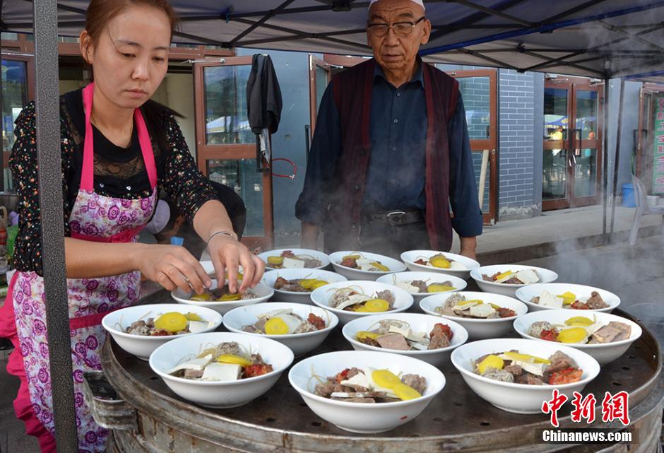 正值新疆巴音郭楞蒙古族自治州、焉耆回族自治县成立60周年之际,9月14日,由新疆巴州人民政府、焉耆县委、县人民政府主办的巴州第三届美食节暨焉耆县第五届旅游美食文化节在焉耆县回民小吃一条街举行,为庆祝州县成立60周年制作的众多美食吸引着众多民众及游客。孙亭文 摄