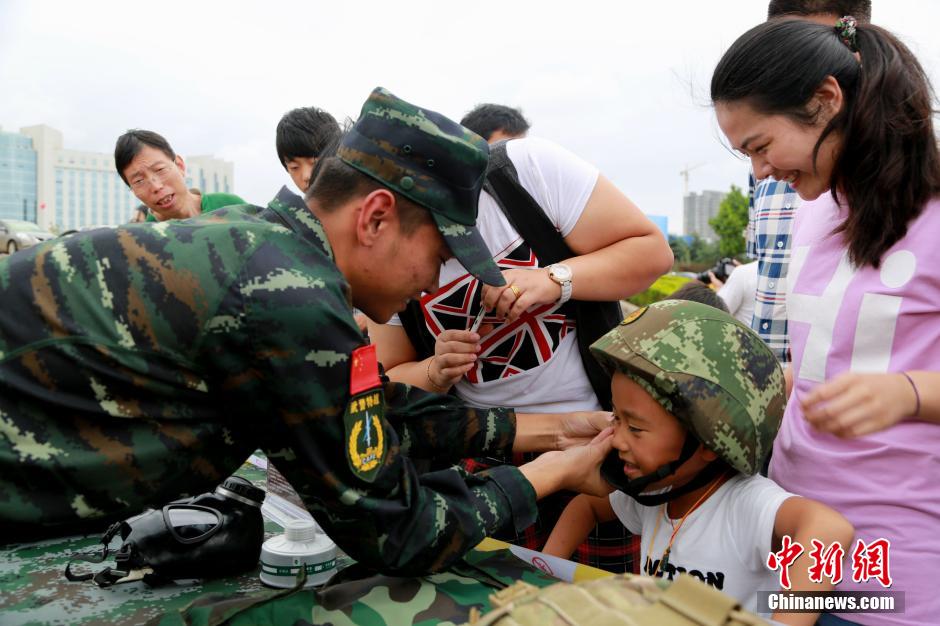 9月13日,日照武警、特警、消防等多部门联合开展反恐防范宣传周暨反恐专业装备力量展示活动,向市民展示了警容警姿和大量武器装备。梁犇 摄