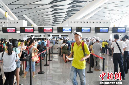 9月13日上午,3000多名“旅客”涌入南宁吴圩国际机场新建的T2航站楼,参加航站楼模拟转场演练。被誉为“双凤还巢”的新航站楼将于25日正式启用,这将极大提升南宁机场的服务保障能力,为把南宁打造成国际性门户枢纽城市插上翅膀。据介绍,新航站楼分为主楼、指廊候机厅两个部分,一期提供32个近机位和18个邻近主体的远机位,建筑面积18.9万平方米。