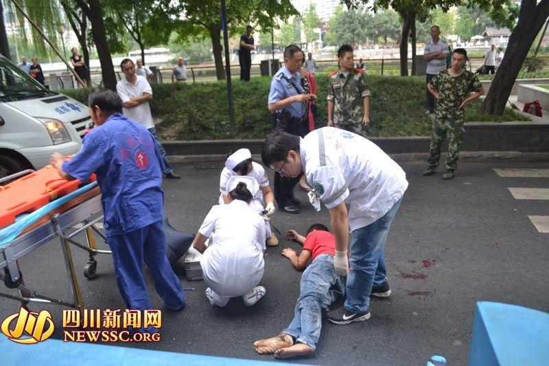现场110民警和男子的朋友劝说了半个多小时,一直到9点过,还是无果。消防官兵立即请示调动充气垫,9点10分左右,消防官兵正在楼下布置充气垫的时候,男子突然从楼上跳了下来,摔在地上,多处受伤。随后,跳楼男子被现场120送往医院进行救治。 图片来源:四川新闻网