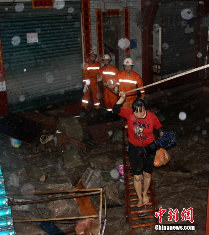 消防官兵洪水中紧急转移受困民众。杜进洋 摄