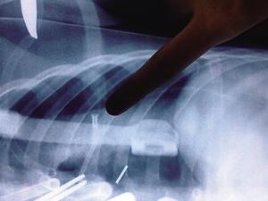 铁钉射入浩浩胸腔