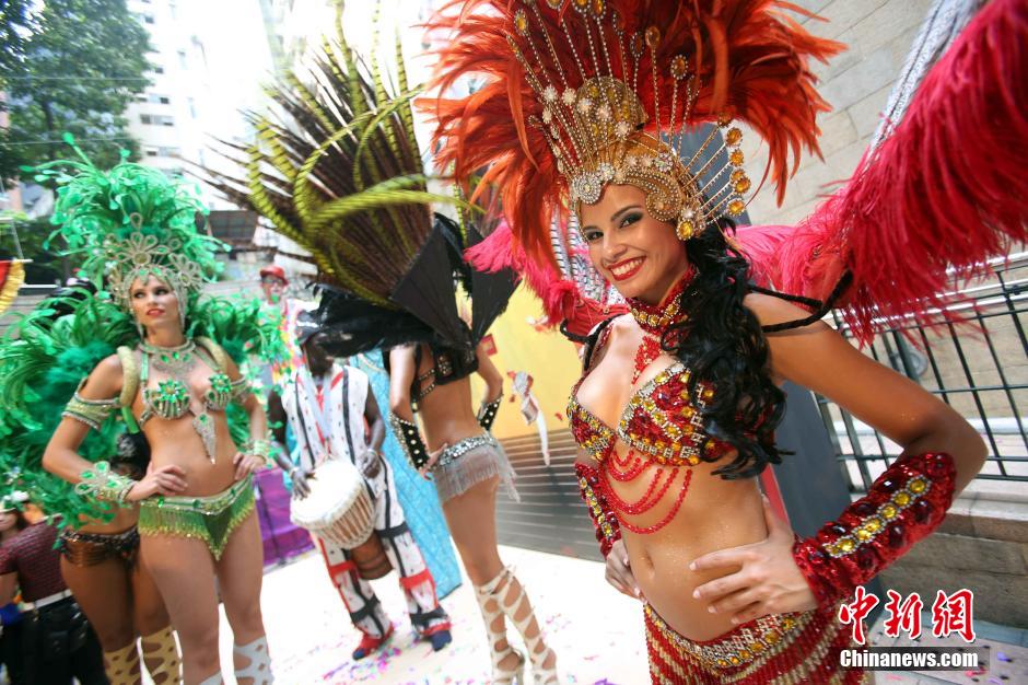 9月25日,性感森巴舞女郎热舞登场,为10月11日至12日在香港兰桂坊举行的嘉年华盛事宣传。这项香港一年一度的大型户外派对,将汇集世界各地美食佳肴和精彩表演节目,吸引游客光临狂欢。中新社发 洪少葵 摄