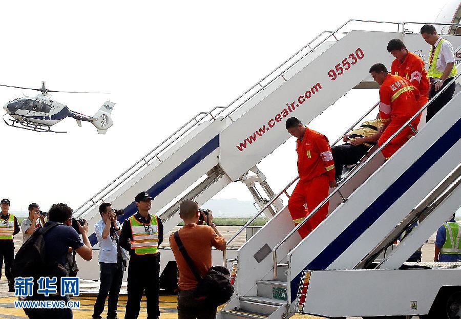 9月25日,机场救护人员实施“伤员”外送作业。当日,上海虹桥机场组织开展一场航空器应急救护演练。演练模拟一航班遭遇强烈气流颠簸,导致机上多名旅客不同程度受伤,紧急降落后,相关保障单位快速参与应急处置。此举旨在检验机场各参演单位组织指挥、应急反应、现场处置和协调配合等方面能力,为实战救护积累经验。新华社记者 陈飞 摄