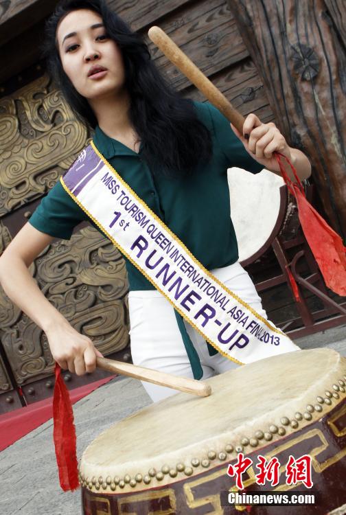 9月28日,正在湖北赤壁参加2014国际旅游小姐菁英赛的中外佳丽,来到赤壁古战场进行拍照游览。中新社发 钱兴强 摄
