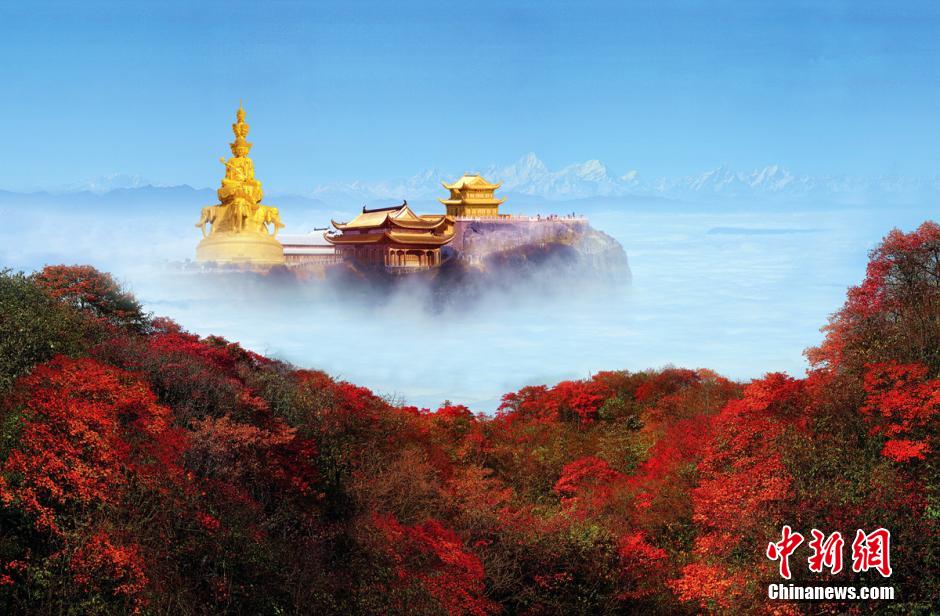 “停车坐爱枫林晚,霜叶红于二月花……”金秋即将来临,峨眉山将迎来层林尽染,五彩斑斓的季节。壮美的奇观,浪漫的秋水,红绿相间的秋叶,连绵起伏的秋云,交相辉映,织就一幅令人心醉的金秋画卷,让人在不经意间如入仙境的感觉。钟欣 摄