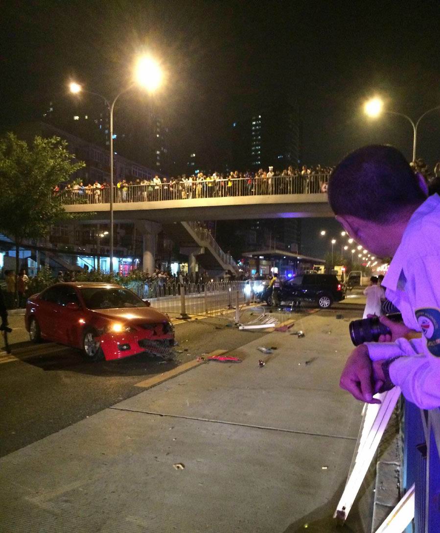 北京朝阳路上两车对向冲撞致一车翻车 现场惨烈(组图)