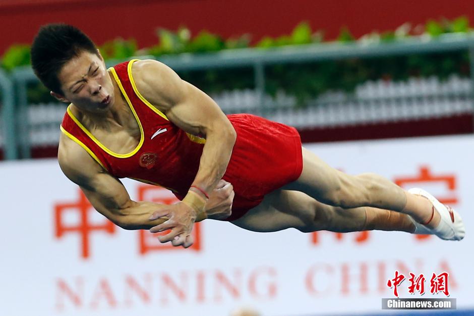 图为中国选手程然在自由体操比赛中。中新社发 盛佳鹏 摄