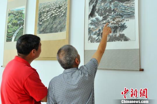 10月8日,在湖北省宜都市博物馆内,当地农民黎泽永的画作在个人画展上展出。黎泽永是宜都市枝城镇黎家坪村农民,做漆匠手艺的他从上世纪80年代初开始学画国画,喜好描绘家乡山水,作品具有色彩鲜艳绚烂、线条淳朴稚拙、乡土气息浓郁的特点,20多年来共绘画2000多幅。此次画展,黎泽永共展出了50幅作品,吸引了来自宜昌市、宜都市的有关专家及当地市民200多人观赏。
