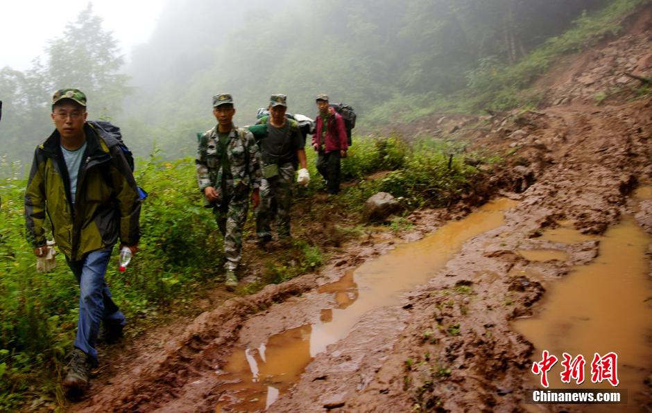搜救人员正在黑竹沟展开搜寻。 钟欣 摄