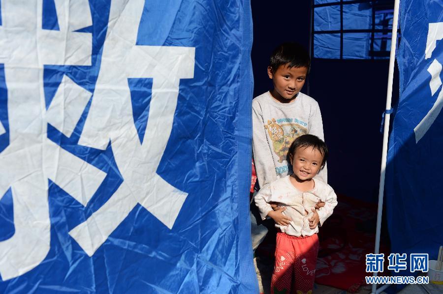 10月8日,两名孩子在景谷县永平镇临时安置点的帐篷内玩耍。 10月7日,云南省普洱市景谷县发生6.6级地震。记者8日在景谷县永平镇一处临时安置点看到,部分受灾群众已得到安置。 新华社记者 胡超摄