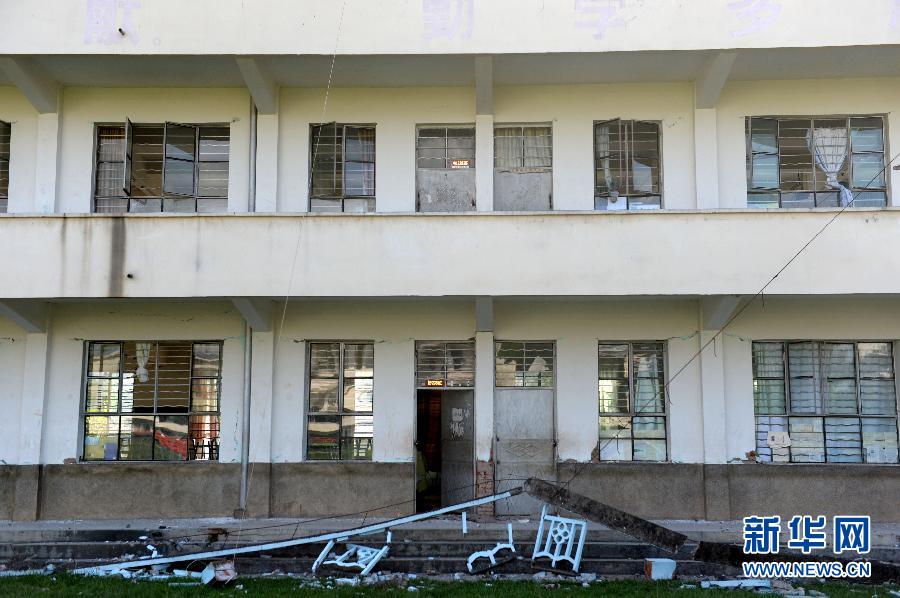 这是在地震中受损的景谷县第二中学教学楼(10月8日摄)。云南省普洱市景谷傣族彝族自治县北京时间10月7日21时49分发生6.6级地震。截至8日15时,地震已造成1人死亡、324人受伤、6988间房屋倒塌、5个县(区)12.46万人受灾。新华社记者胡超 摄