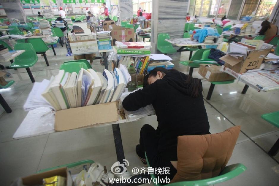 济南一高校学生在食堂内备战考研