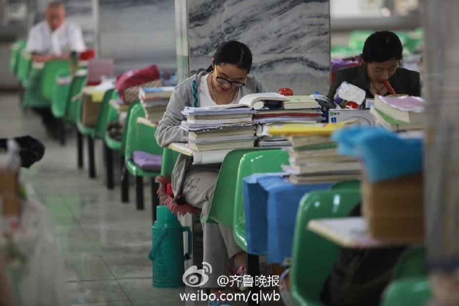 近日,济南市一高校,众多考生在学校食堂餐桌上备战考研。据了解,该大学的学生,为备战考研将食堂餐桌变成“课桌”。“这边主要以医院为主,教学楼就剩一个,除了5楼一个考研自习室,平时其他教室有课,没办法就只能来食堂复习备考。”一位考生说。 图片来源:齐鲁晚报官方微博
