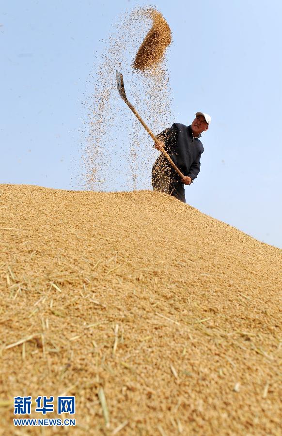 10月10日,宁夏回族自治区农垦集团暖泉农场的农垦职工在收获稻谷。金秋时节,宁夏回族自治区各地进入粮食收获季,在宁夏农垦集团各大农场,水稻、玉米等农作物的秋收工作全面开始。据了解,今年宁夏农垦集团玉米种植面积达到35万余亩,水稻种植面积达到15万余亩。新华社记者 彭昭之 摄