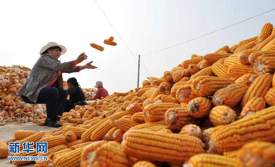 10月10日,宁夏回族自治区农垦集团暖泉农场的农垦职工在分拣刚收获的玉米。金秋时节,宁夏回族自治区各地进入粮食收获季,在宁夏农垦集团各大农场,水稻、玉米等农作物的秋收工作全面开始。据了解,今年宁夏农垦集团玉米种植面积达到35万余亩,水稻种植面积达到15万余亩。新华社记者 彭昭之 摄