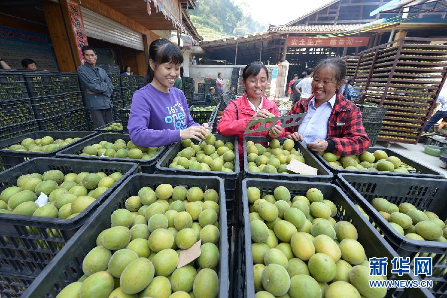 10月9日,在广西龙胜各族自治县,当地一家企业的工人在查看已装箱的罗汉果。广西龙胜各族自治县通过“公司+合作社+农户”的方式大力发展罗汉果种植产业,目前,该县罗汉果种植面积已有1万多亩,年产值超过1亿元。新华社发(韦吉阳 摄)